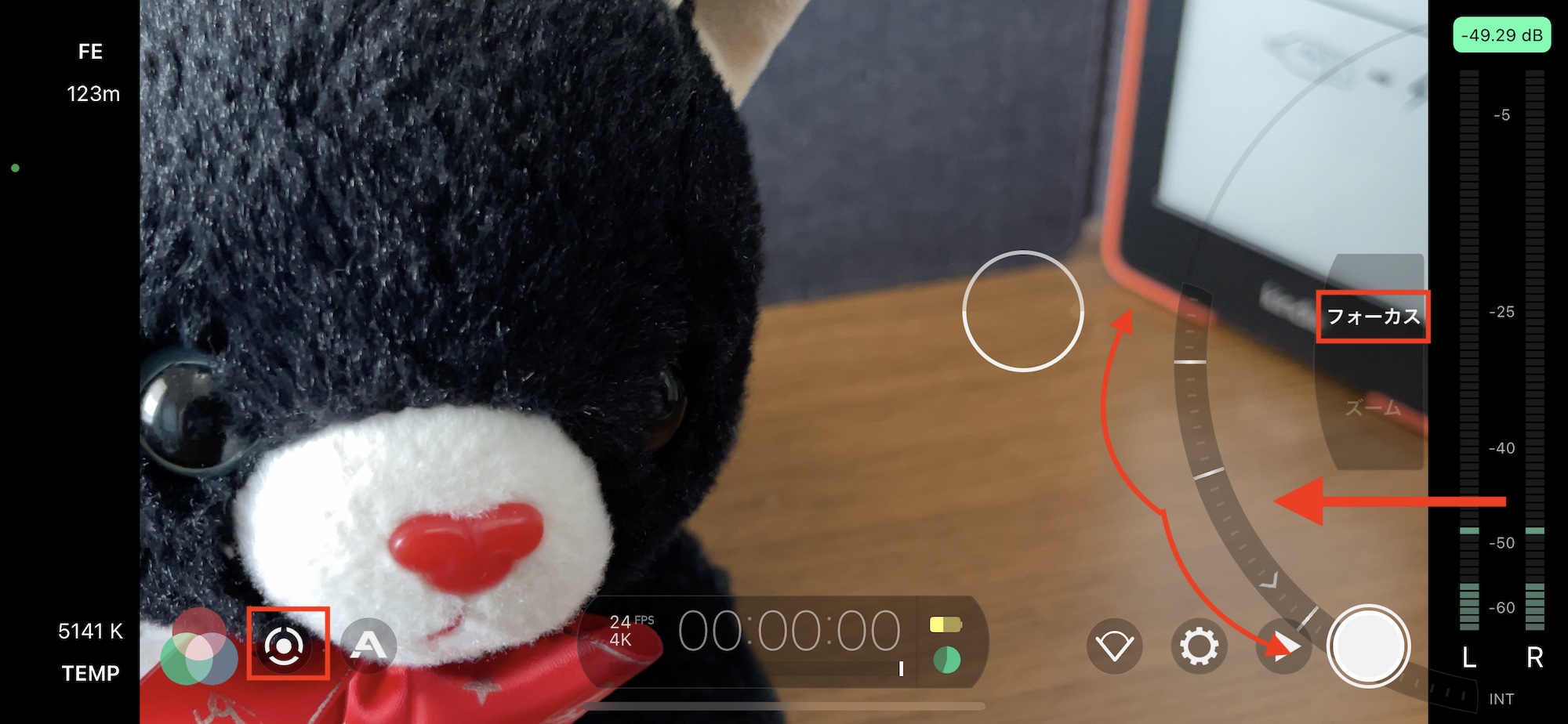 フォーカスは右側のアークスライダーをスライドすることで簡単に調整ができます。