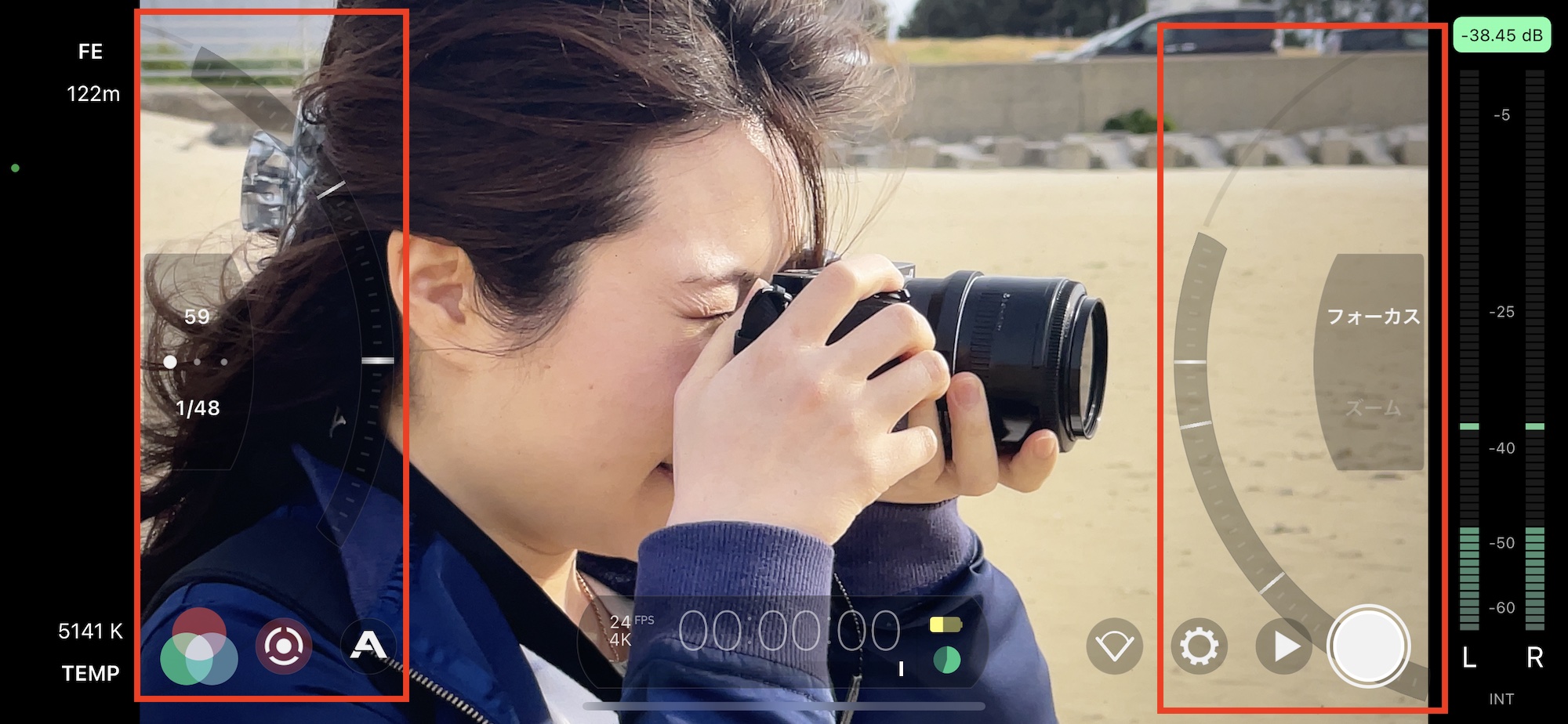 左側は露出の項目になり、ISOとシャッタースピードの変更が行なえます。右側はフォーカスまたはズームの調整が行えるものです。