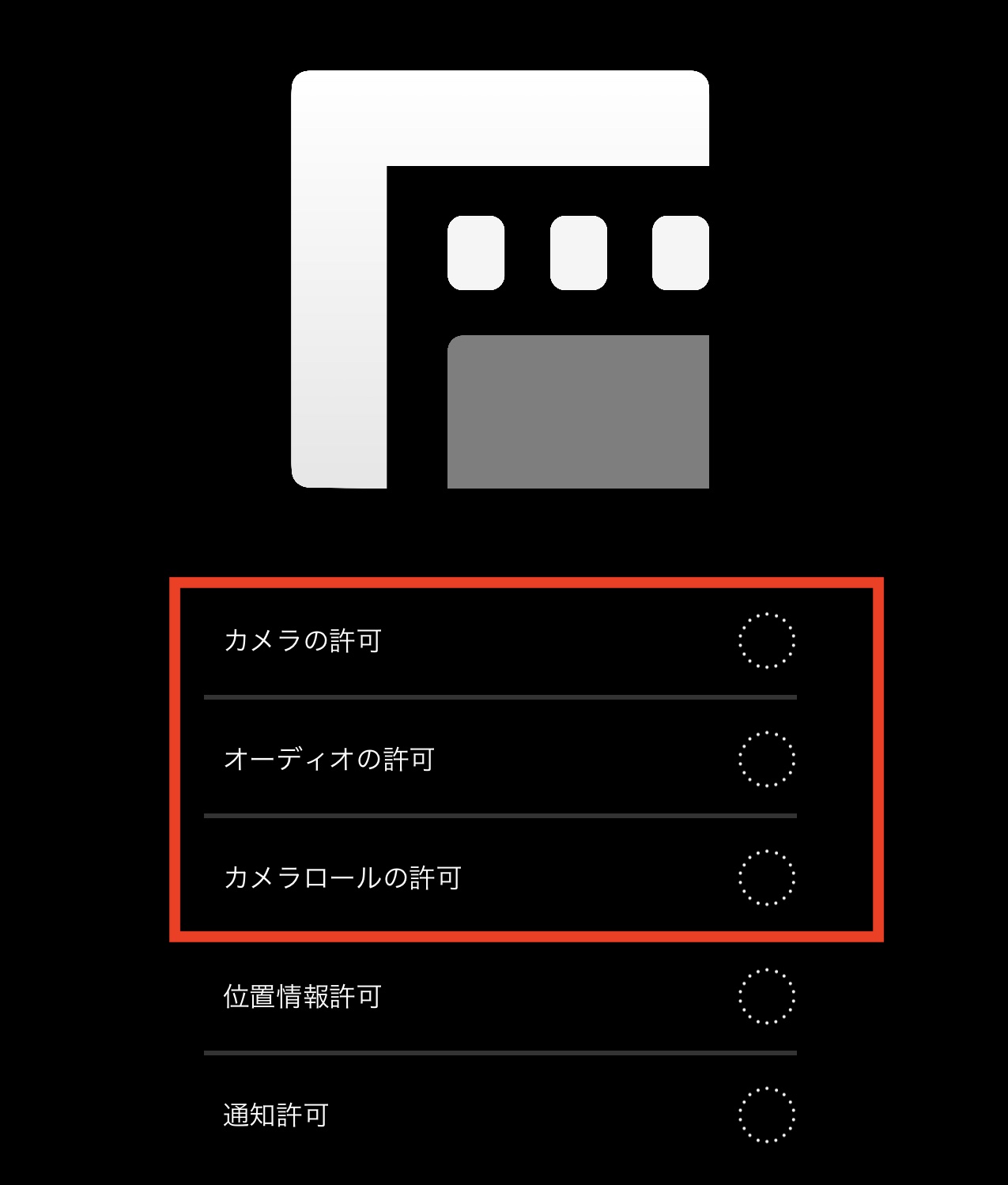 FiLMic Proを初めて起動する際はカメラやオーディオへのアクセスの許可が必要になります。基本的に「カメラの許可」、「オーディオの許可」と「カメラロールの許可」を行えば問題ないでしょう。