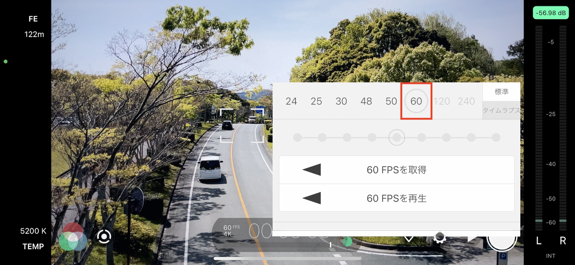 なお「FPSを取得」と「FPSを再生」からより細かい設定を行うことも出来ます。基本的に上部の一覧からフレームレートを選べば問題ありませんが、記録後にタイムラプスまたはスローモーションとして保存したい場合はこの項目を変更します。