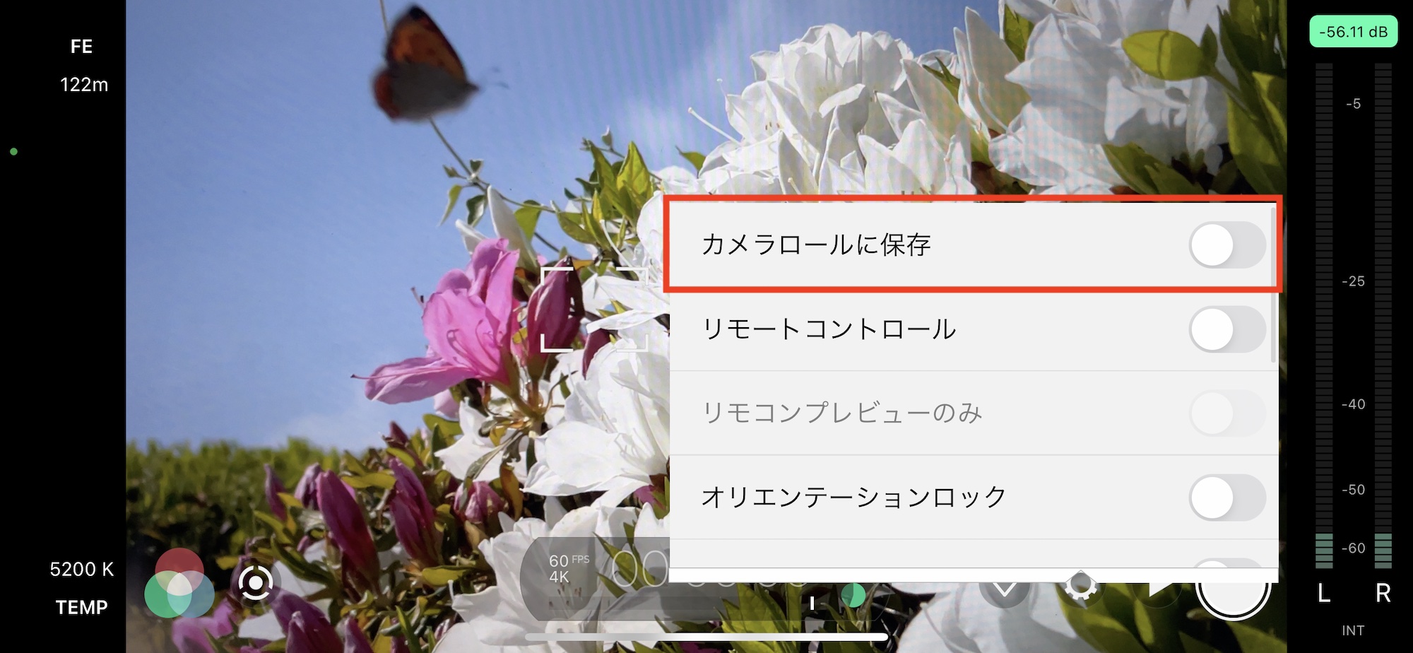 なお、FiLMic Proのデフォルトでは撮影された映像は全てFiLMic Proのアプリ内に保存されますが、設定の「デバイス」内にある「カメラロールに保存」のオプションをオンにすれば記録後は全てカメラロールに保存されるようになります。