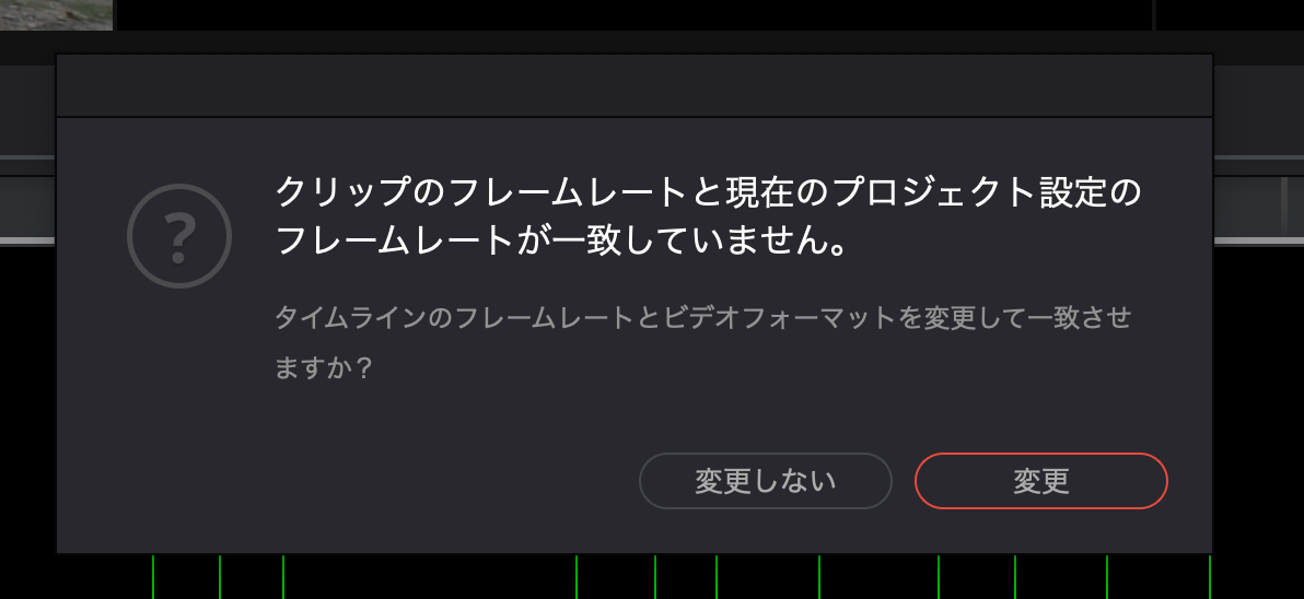 フレームレートの変更についての警告が現れる場合は、必要に応じて変更しておくようにしましょう。