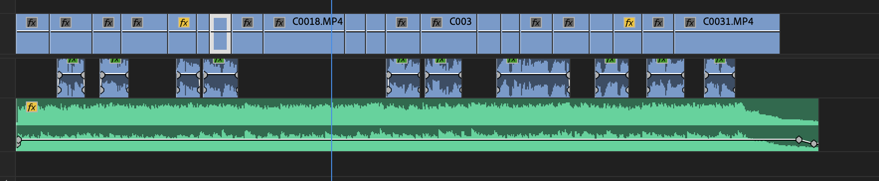 クロスディゾルブやVFXなどのエフェクトがある場合は非表示、または取り除くようにしておきましょう。オーディオの部分に関しては好みになりますが、BGMなどは取り除いて書き出すのが良いと思います。