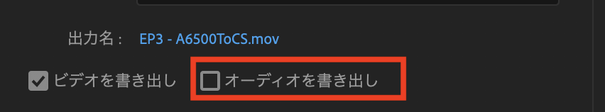 10-bit、12-bitやRAWなどで撮影されたプロジェクトは極力、素材の形式やコーデックにマッチしたものを選ぶようにしましょう。ちなみにオーディオが必要ない場合は「オーディオを書き出し」部分のチェックを外しておきます。