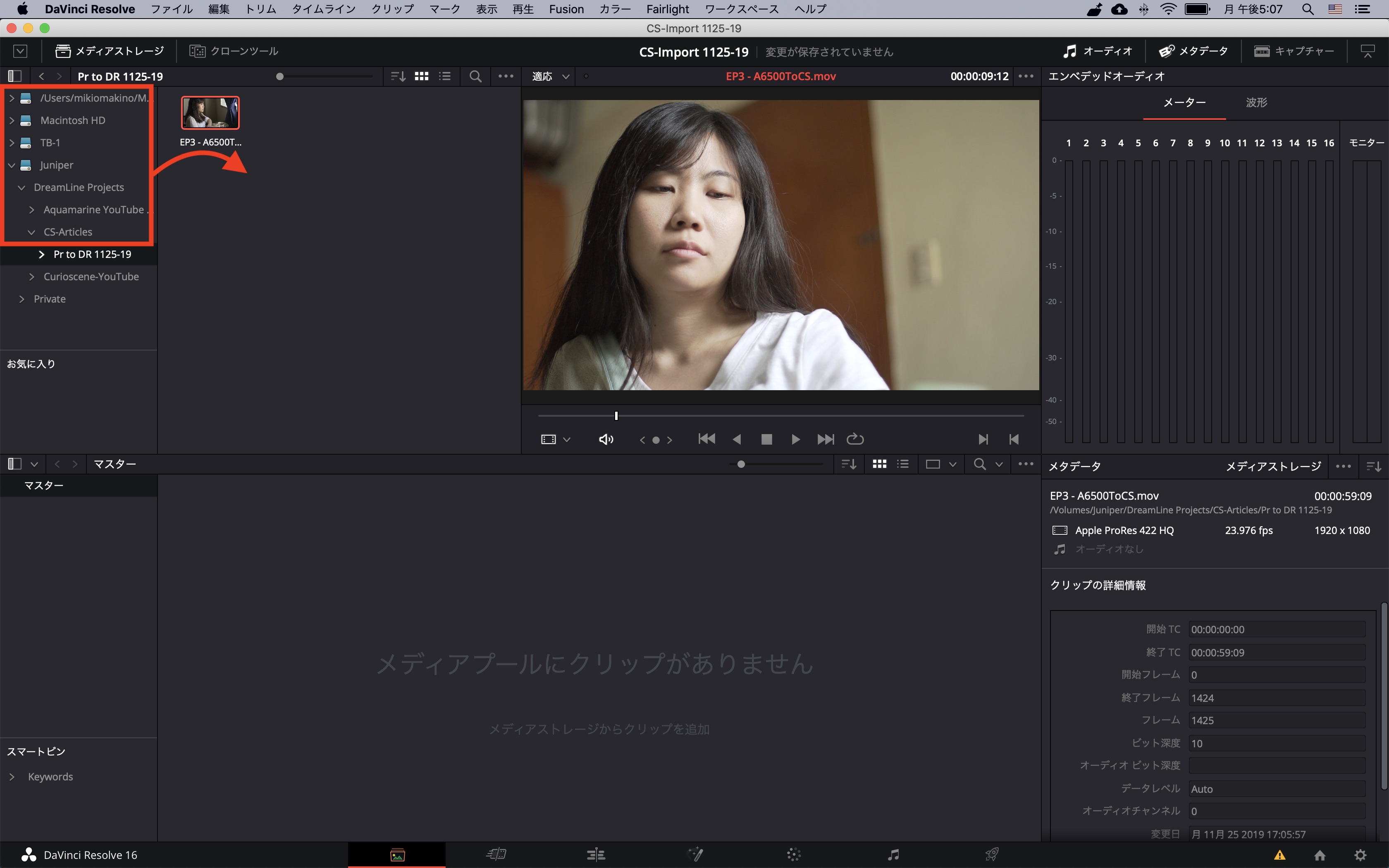 DaVinci Resolveへの読み込み