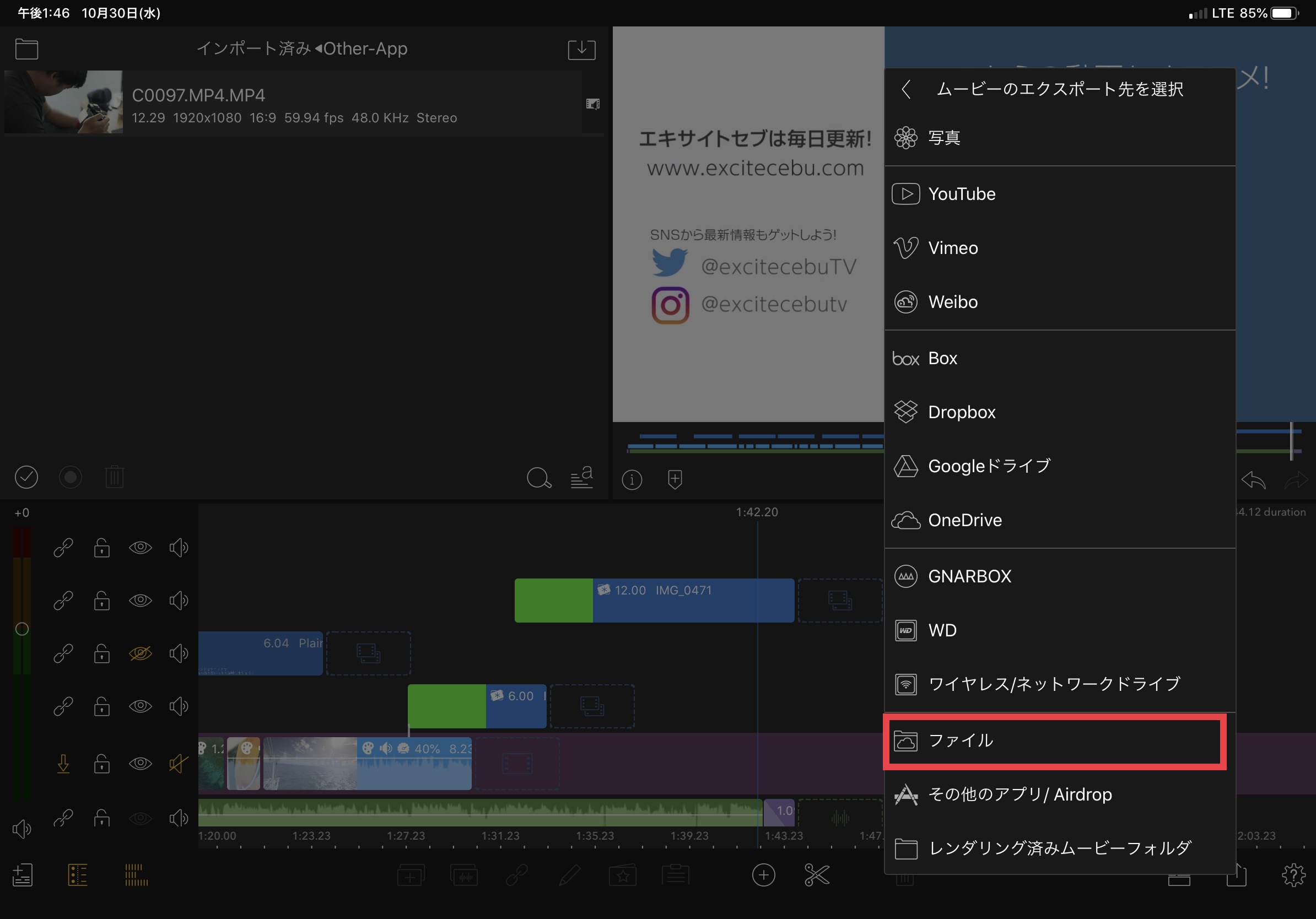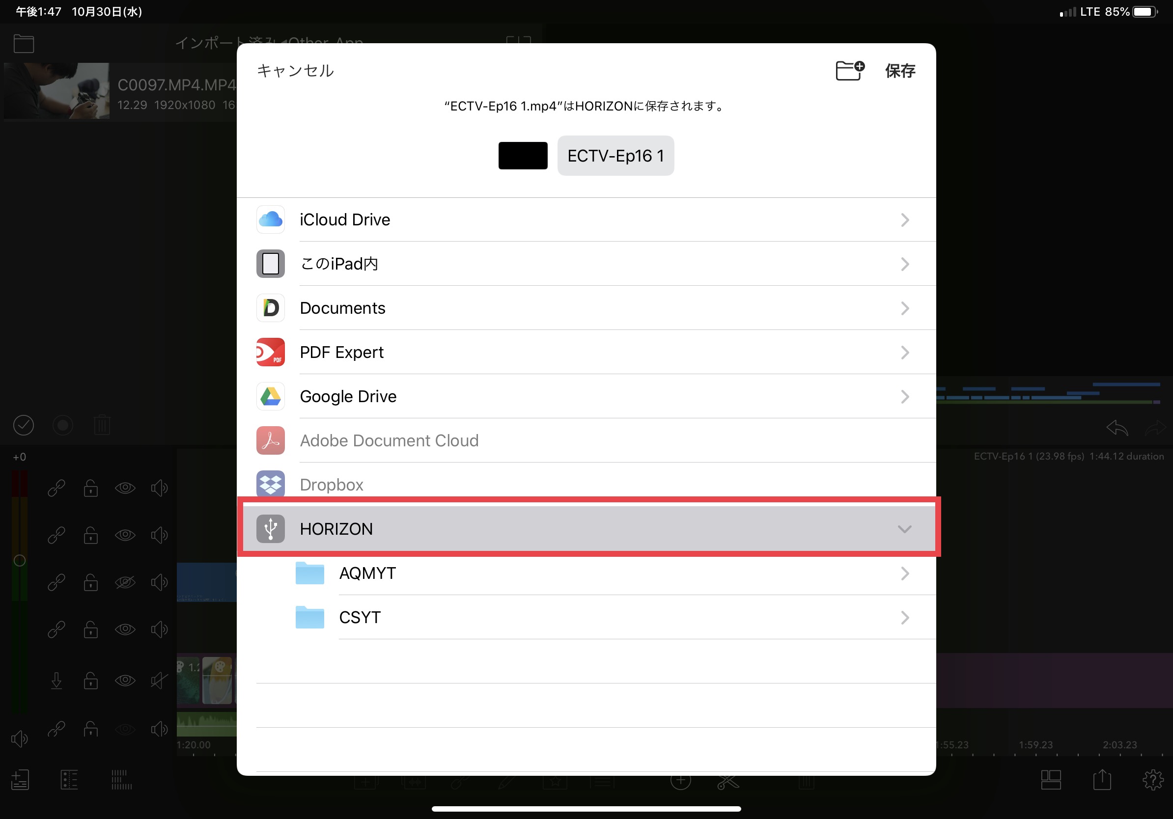 LumaFusionでファイルAppへの読み込みが出来たことで、書き出し設定でも外付けドライブに保存ができるようになりました。