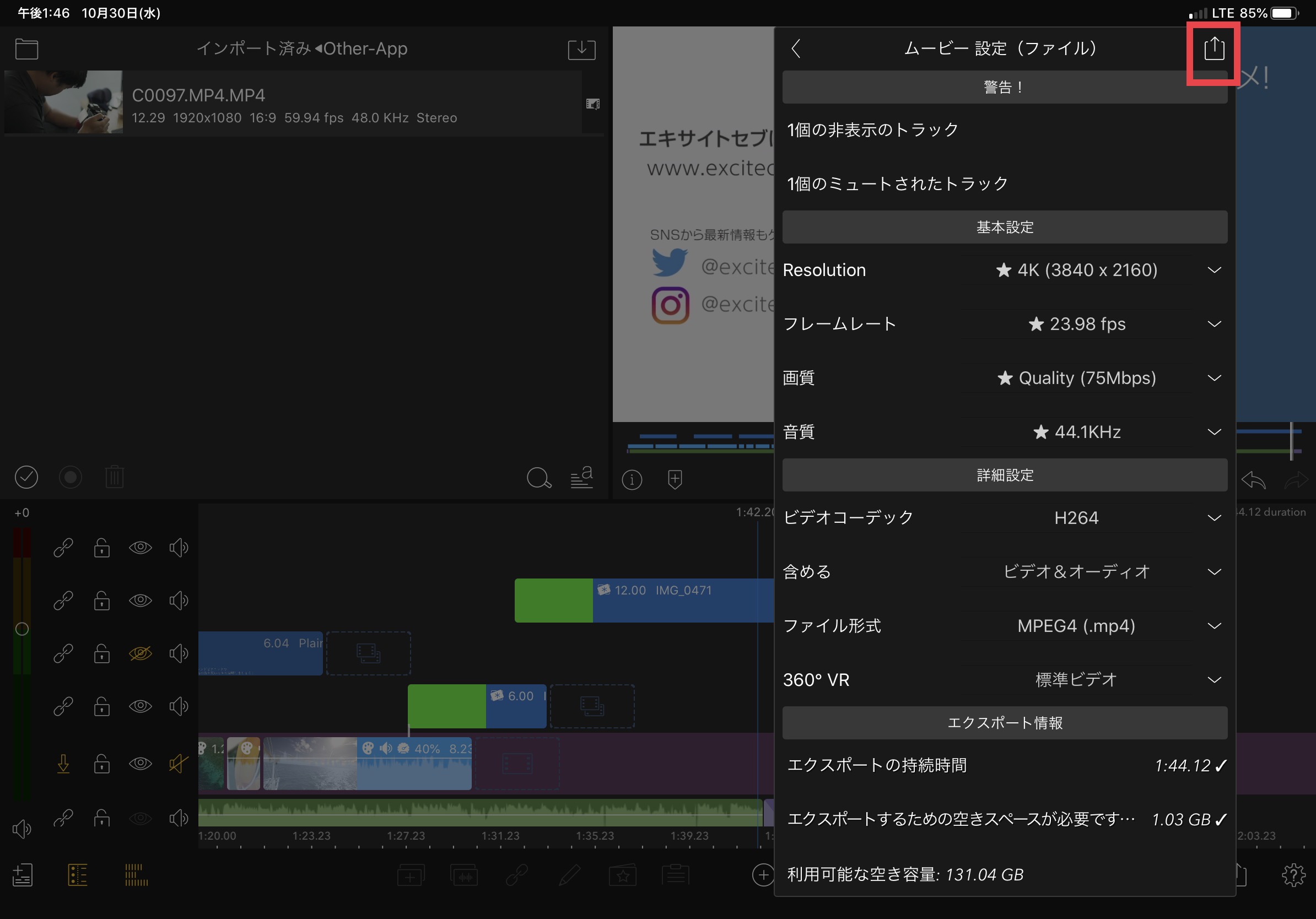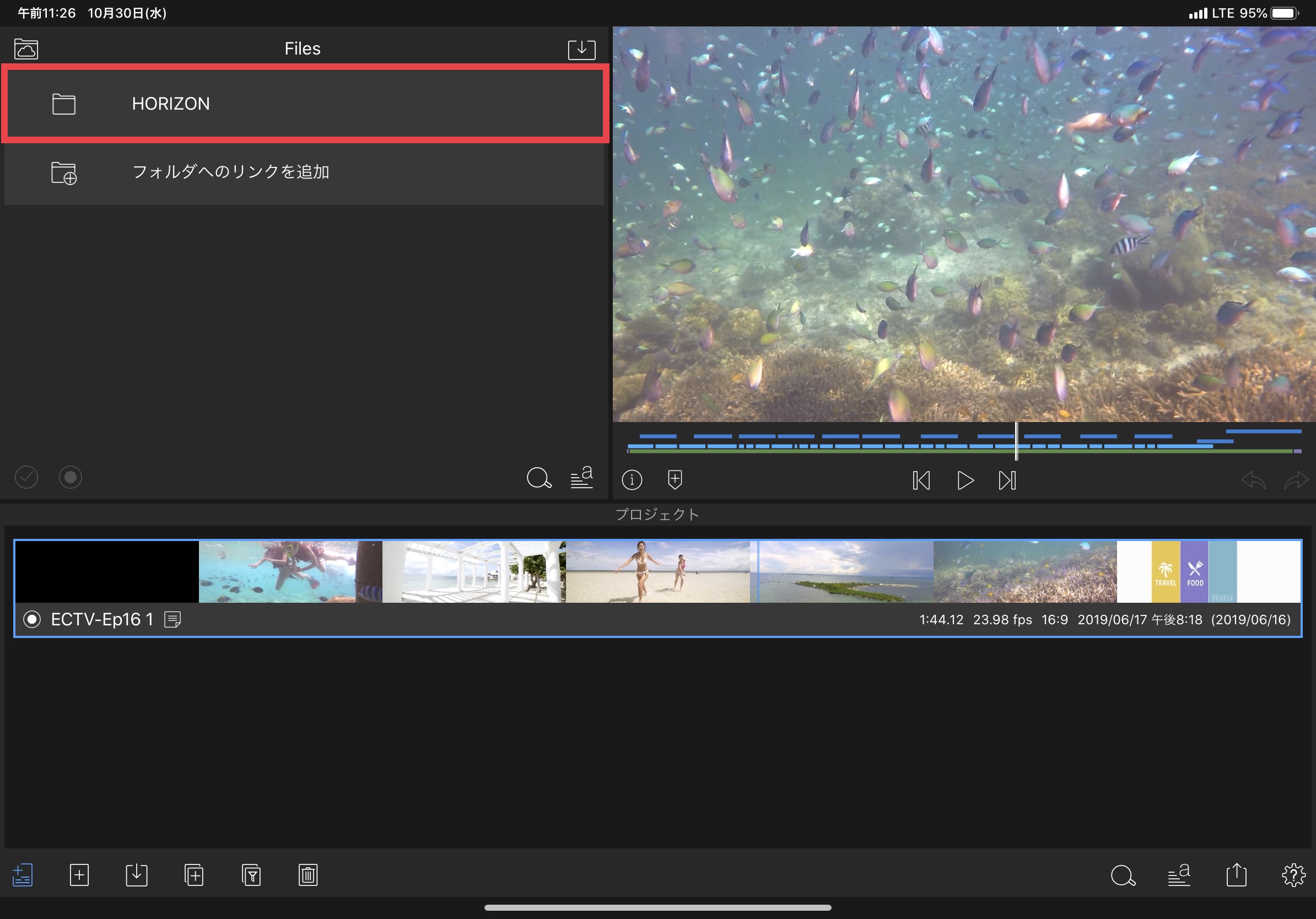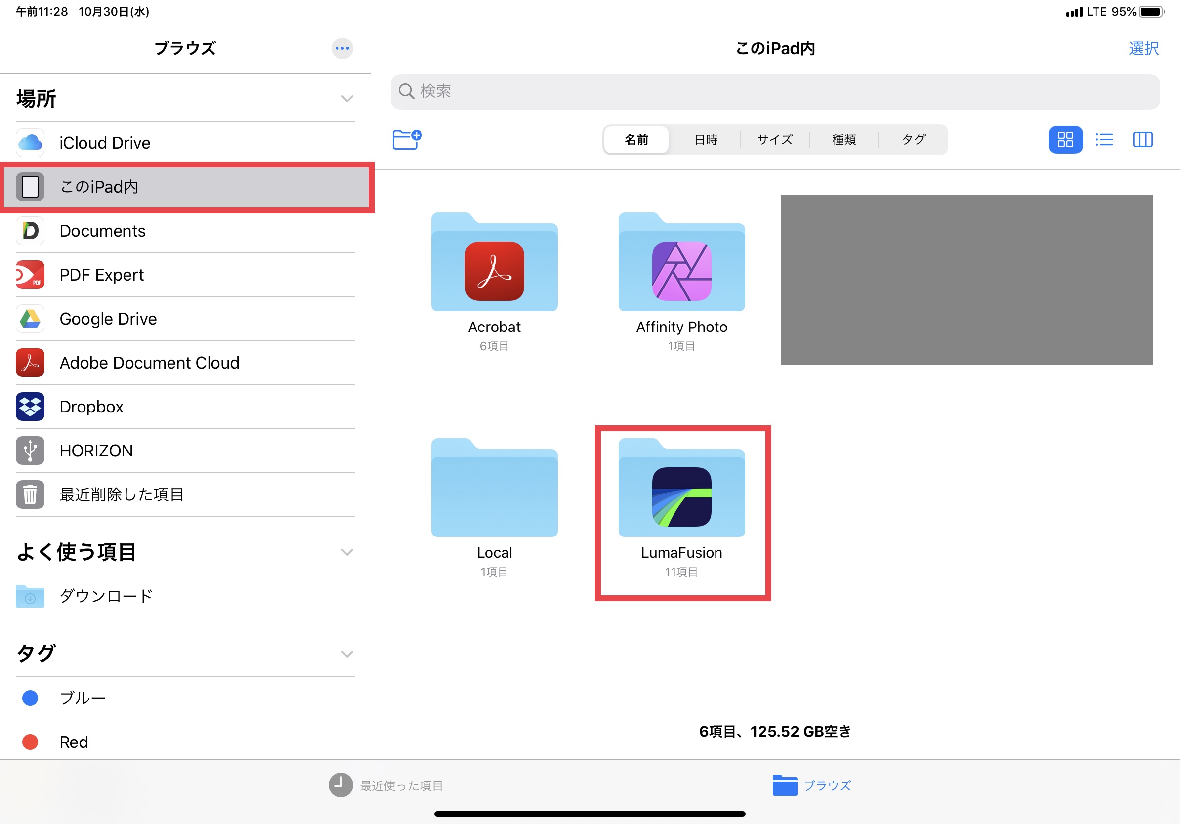 LumaFusionのみで外付けドライブに保存された素材を読み込めるので、便利にはなったものの、読み込んだファイルはiPadやiPhone本体に保存されるのでストレージ容量には注意するようにしましょう。