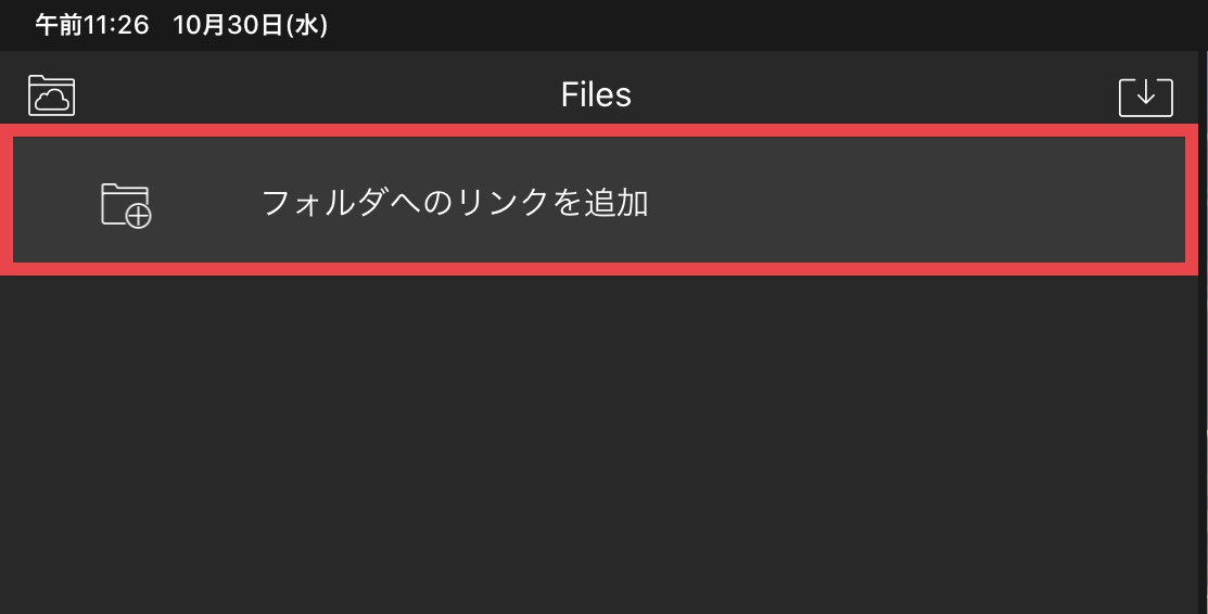 すると「フォルダへのリンクを追加」と表示されるので、タップして、読み込みたい外付けドライブの項目を選択しましょう。