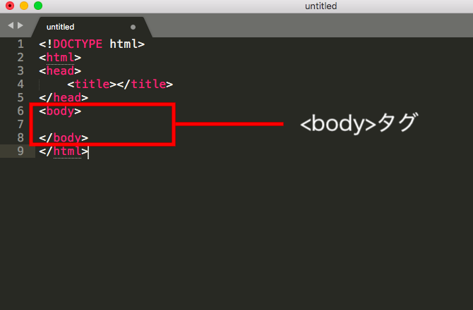 いちいち自分の手で書いていくと面倒ですが、テキストエディターによっては既に用意してある場合があります。Sublime Textの場合はHTMLのモードにして「html」と入力してtabキーを押すと自動で追加してくれます。