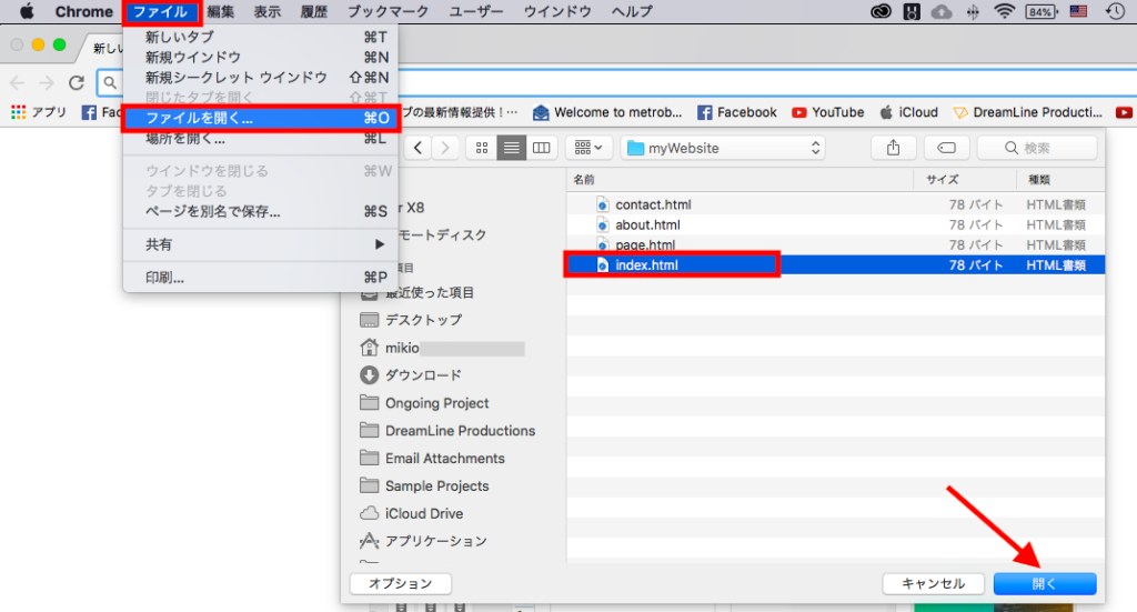 作成されたHTMLファイルはサーバーにアップロードしなくてもGoogle ChromeやSafari、Firefoxなどのウェブブラウザにドラッグ・アンド・ドロップまたはファイルを読み込む事で開くことが出来るようになります。