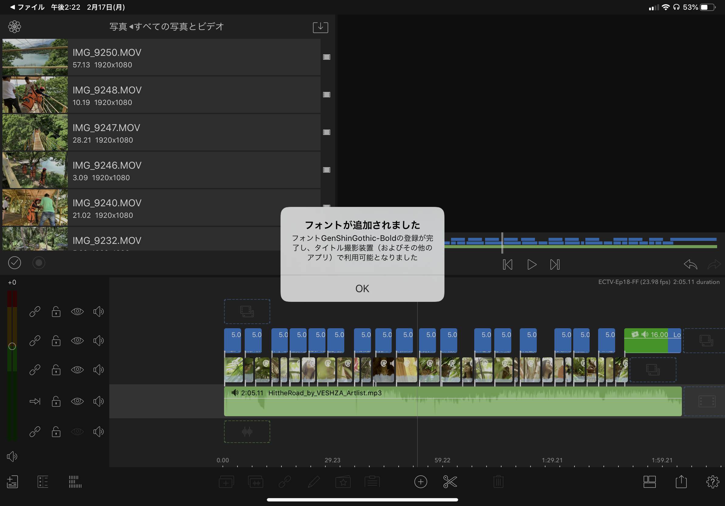 するとLumaFusionが開くので、「フォントが追加されました」と表示されればインストールが完了です。
