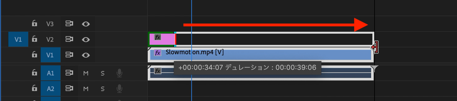 そして、調整レイヤーをクリップの長さに合わせましょう。