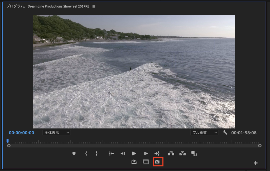 そしてプログラムウィンドウにあるカメラアイコンの「フレームの書き出し」をクリック。