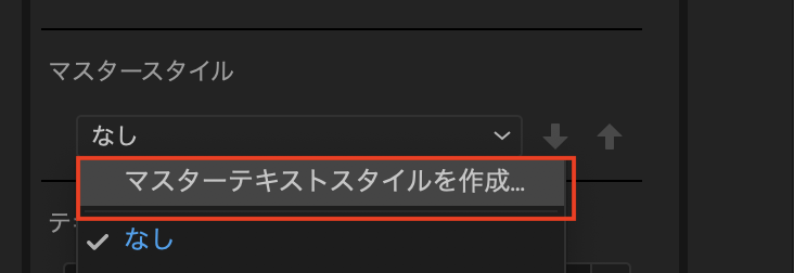 「テキスト」の真上にある「マスタースタイル」のドロップダウンメニューを開き、「マスターテキストスタイルを作成」を選択します。
