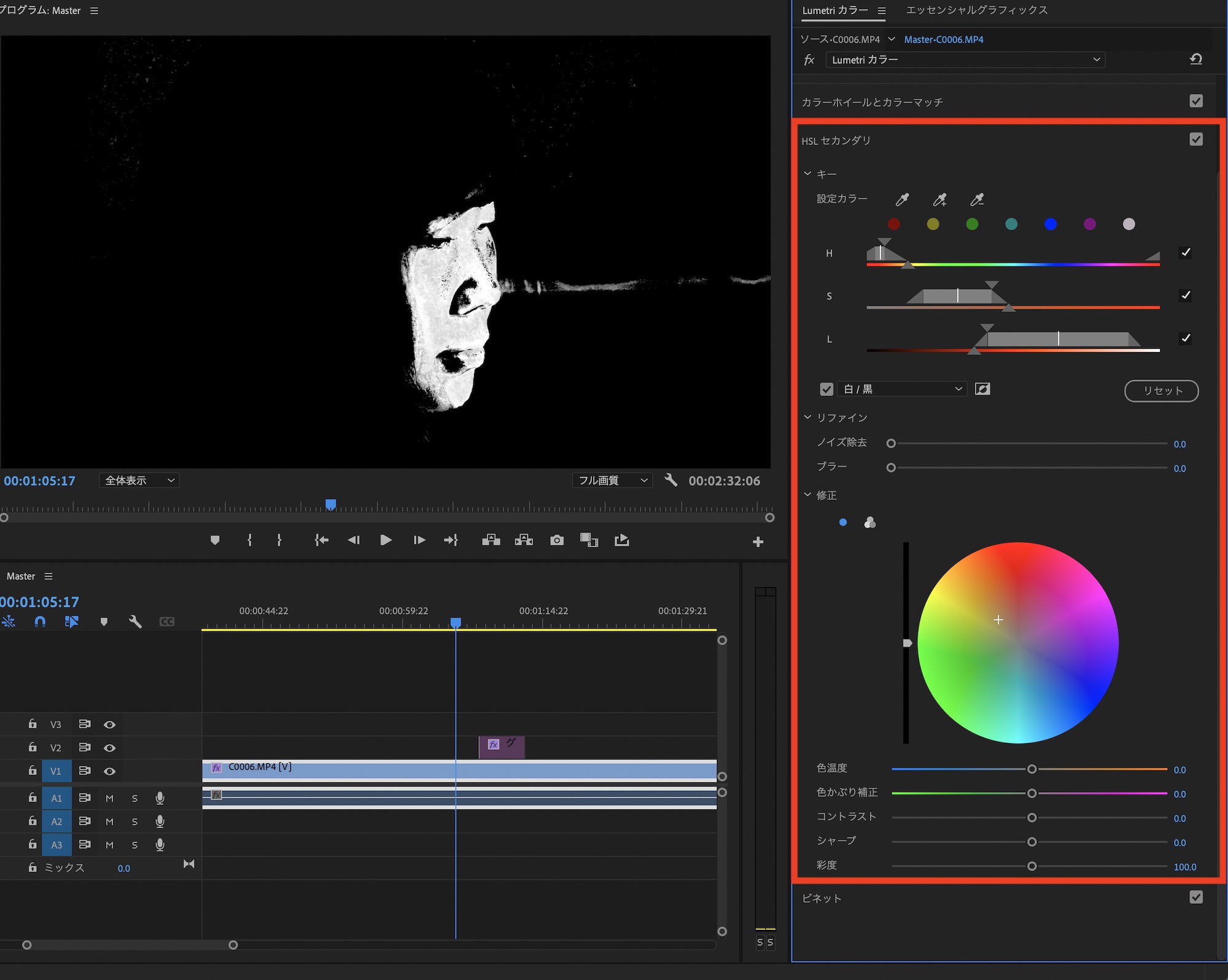 スキントーン以外にももちろん使えるので、カーブは使わずに特定の色の彩度や色などを調整したい場合はこちらの方がサクッとできるのでおすすめです。