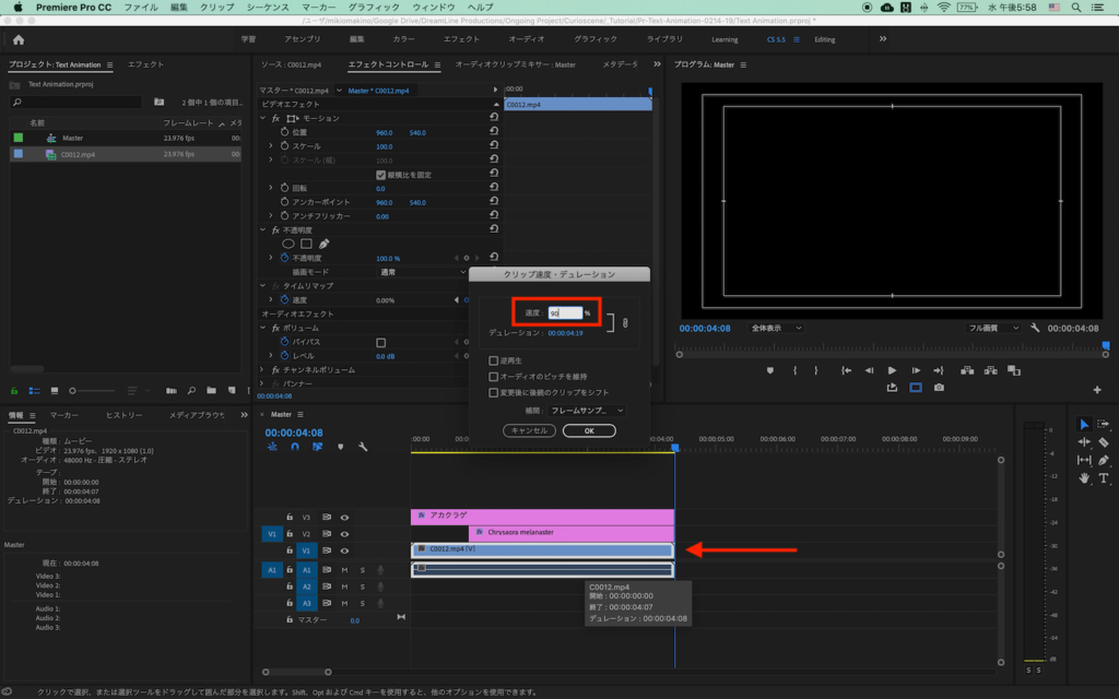 もしクリップの尺が短いようであれば、速度の調整を行うと良いかもしれません。