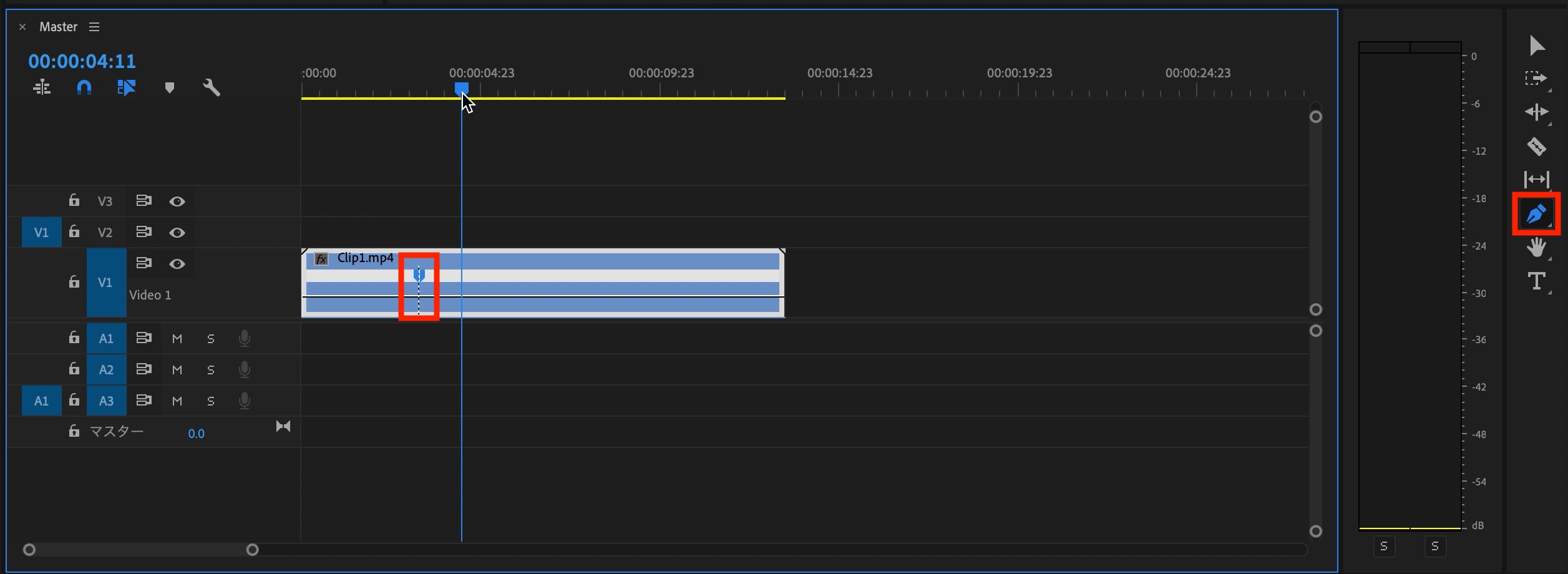 ツールバーにあるペンツールを使い、速度を変化させたいタイミングに横線をクリックするとキーフレームが追加されるようになります。