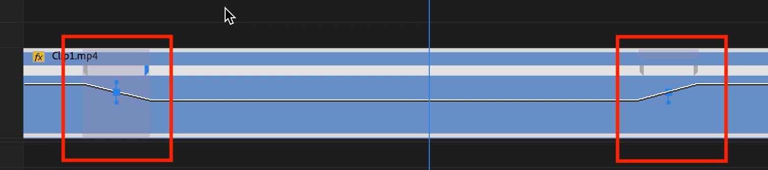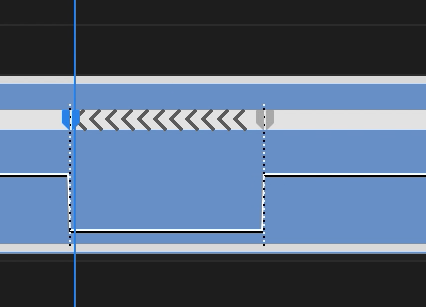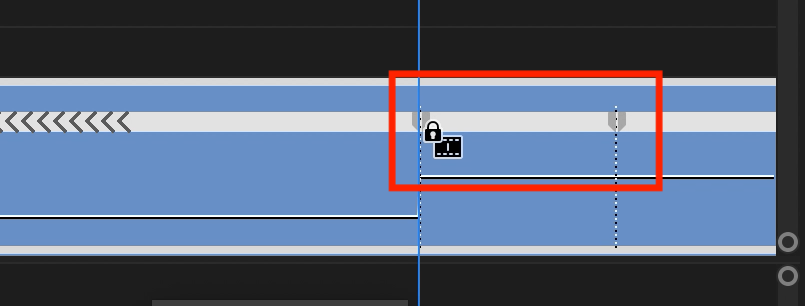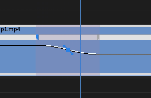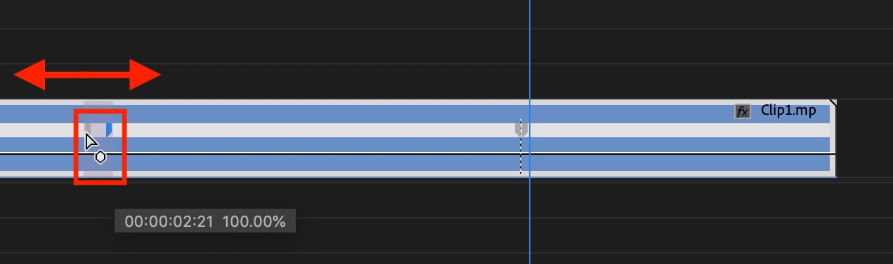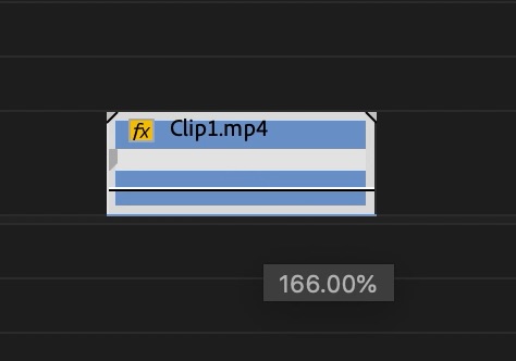 この横線はクリップの速度100%になっており、線を上に動かすとクリップの速度が上がり、その逆は遅くなります。なお、速度を変化させると、それに合わせてクリップの長さも変化します。