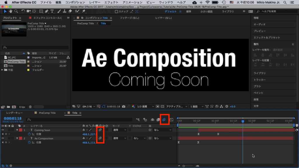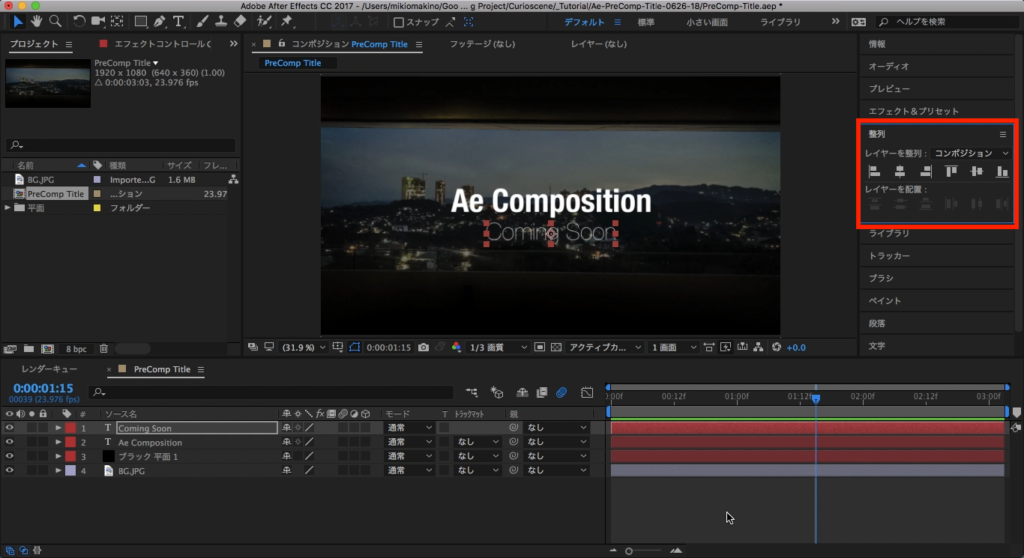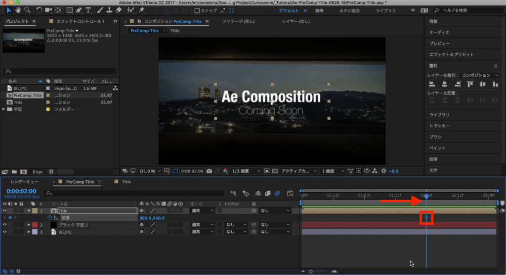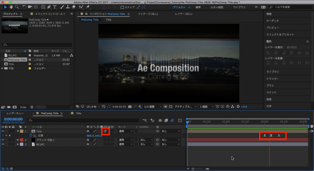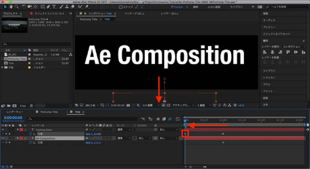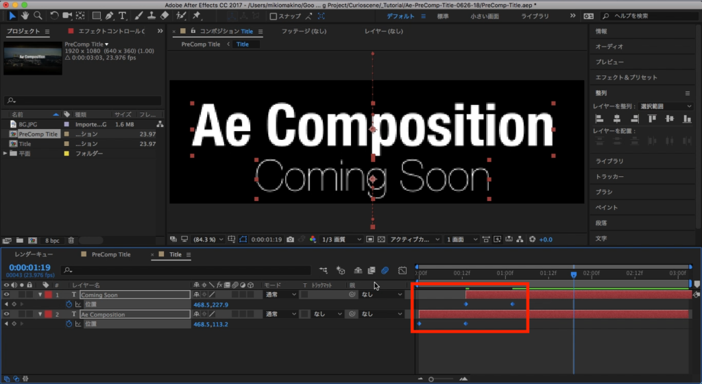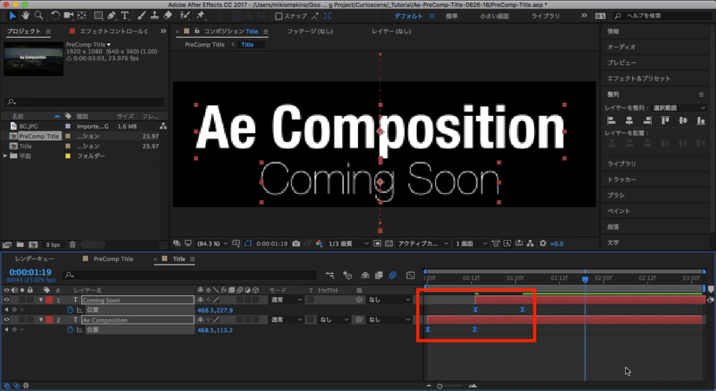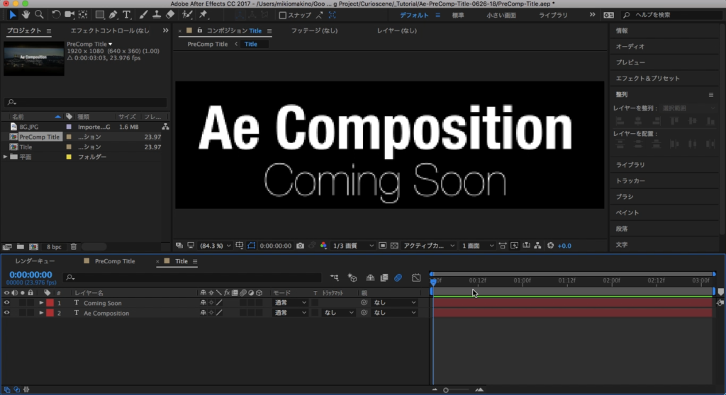 [After Effects] プリコンポジションを使ったシンプルな動くタイトル