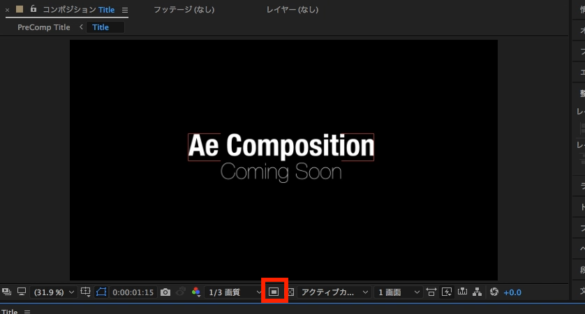 その後はプリコンポジション化されたコンポジションを開き、下部にある「目標範囲」のツールを使用して、テキストが収まるくらいのサイズにクロップしていきます。