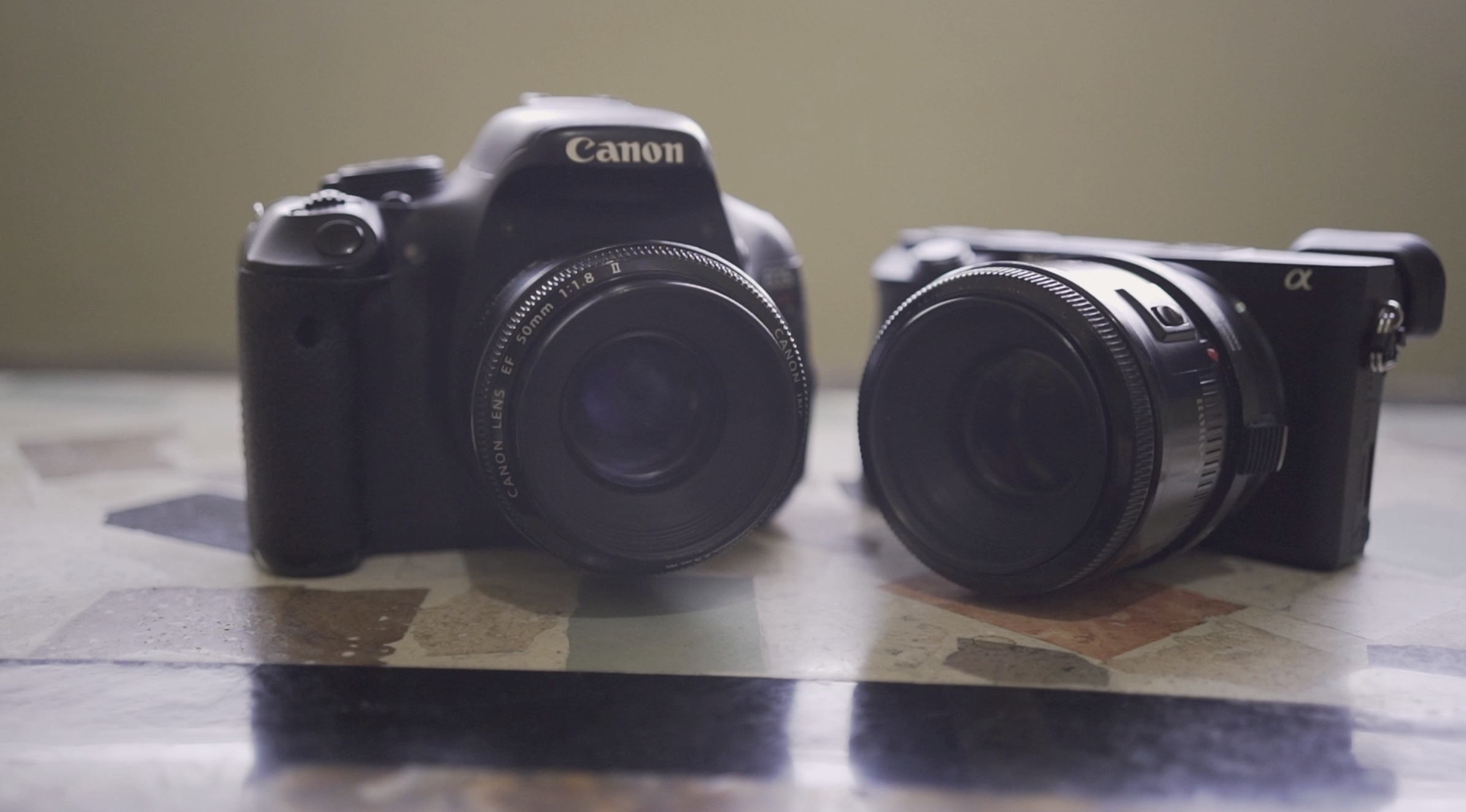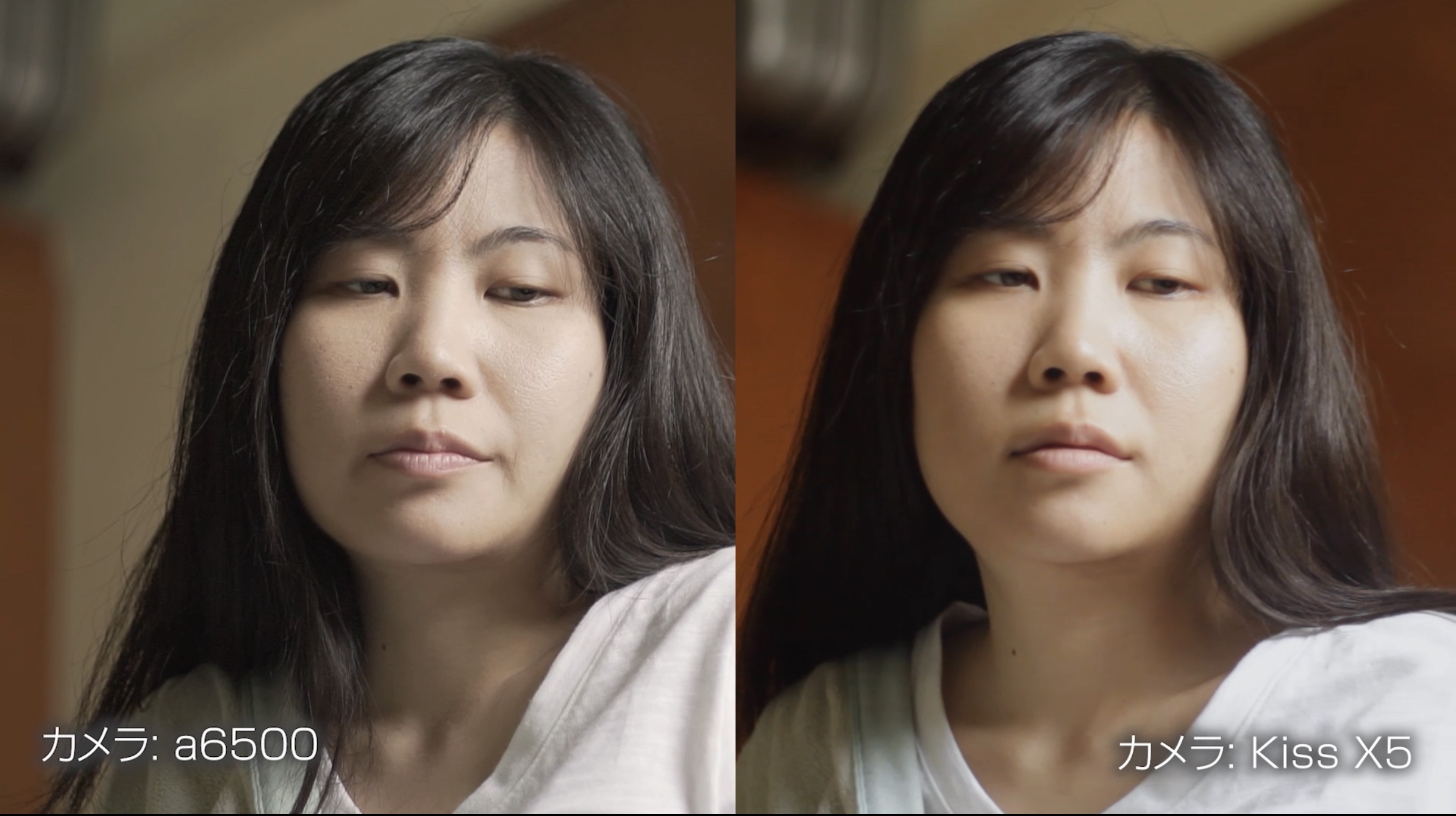 最初のシーンは窓から入ってくる太陽光のみ使っての撮影です。Kiss X5とa6500を比べてみても良い勝負でした。
