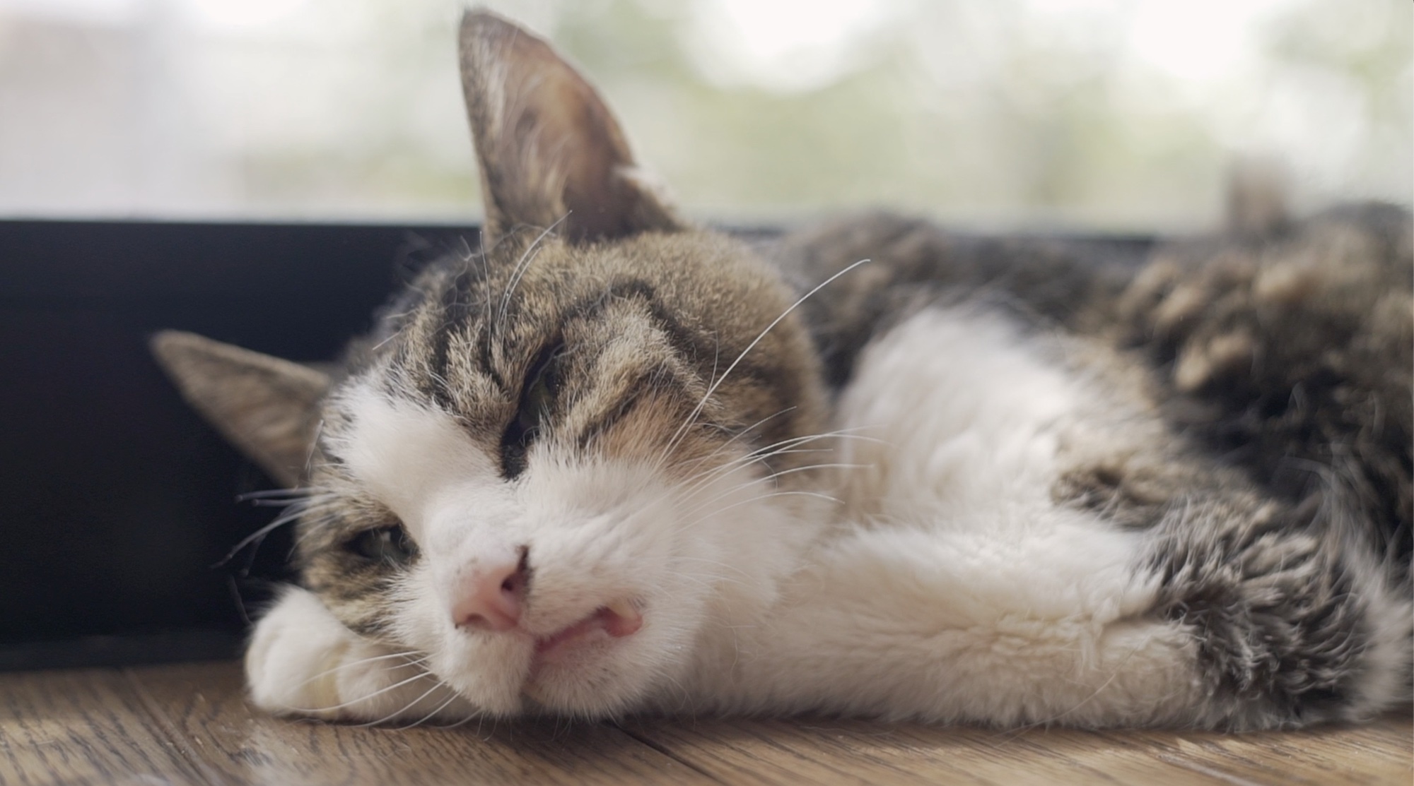 最初はリビングで猫とじゃれ合うシーンを撮影していきます。こちらは主に自然光を使用して撮影していきます。