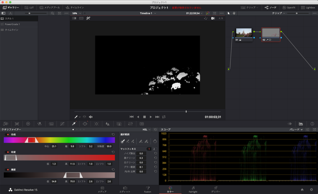 使用するクリップによって若干変わってきますが、RGBパレードにあるRGBがだいたい揃えば大丈夫です。