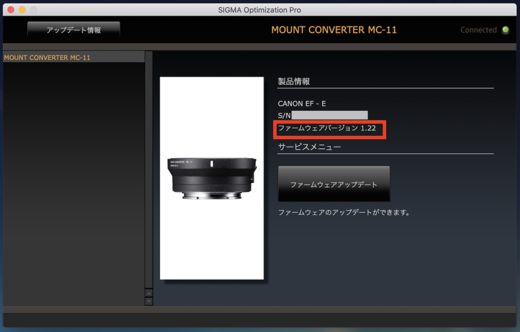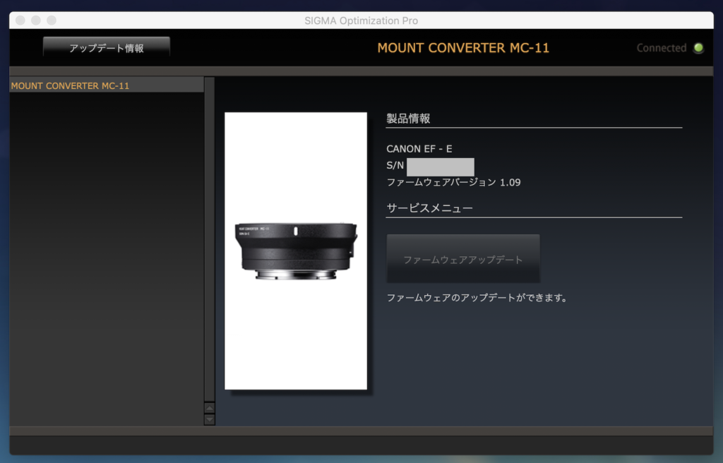 またSIGMAレンズでも最近リリースされたレンズが対応していない場合もあるため、その際はレンズを使用する前にMC-11のファームウェアアップデートが必要です。今回はそんなMC-11のアップデート方法を紹介したいと思います。