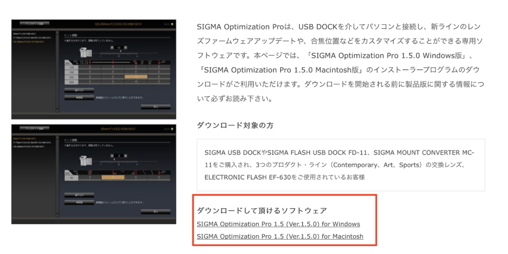 マウントアダプターのファームウェアのアップデートを行う前に、SIGMAが提供するユーティリティーアプリを入手する必要があります。