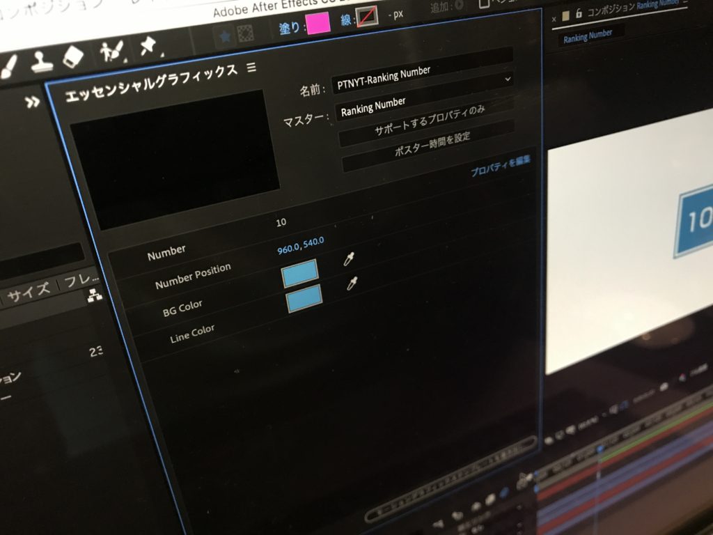 エッセンシャルグラフィックスはAfter EffectsやPremiere Proで作成したモーショングラフィックスをテンプレートとして書き出せる便利な機能。主にAfter Effectsで制作した物をテキストや色、位置などのプロパティをPremiere Pro調整するのが、主流な方法です。