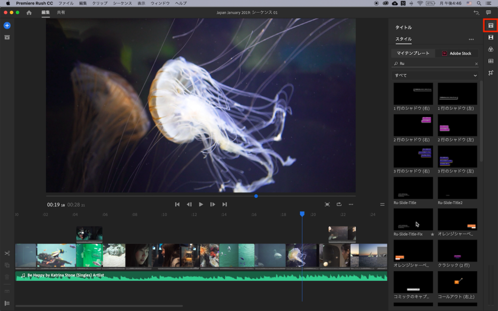 [Premiere Rush] 作成したエッセンシャルグラフィックスをRushで使用する方法