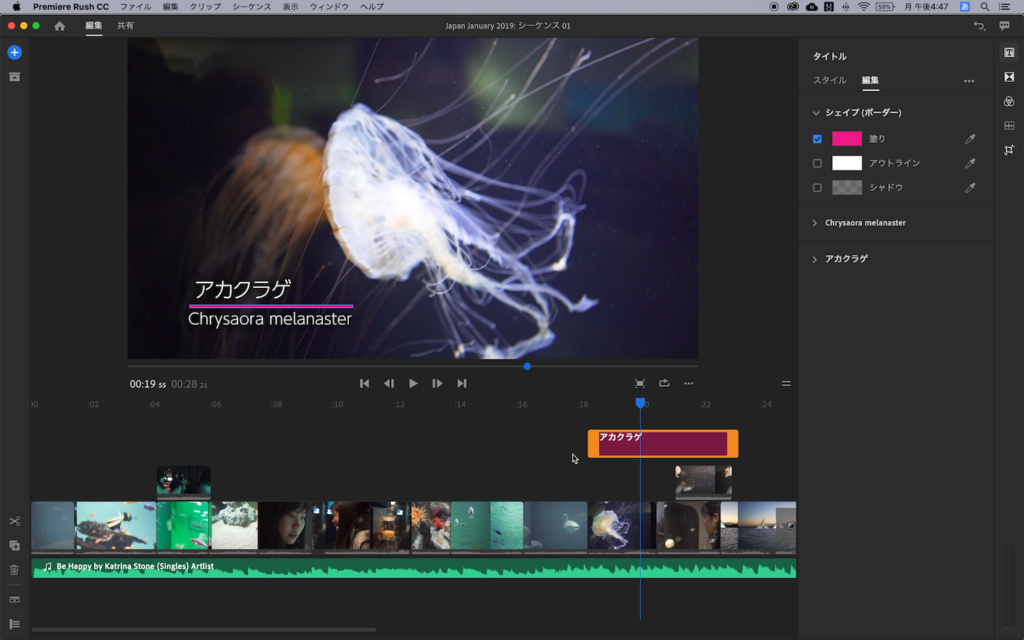 今回のチュートリアルではPremiere ProでRushで対応しているアニメーションを使用してエッセンシャルグラフィックスを制作し、Premiere Rushで読み込んでみましょう。