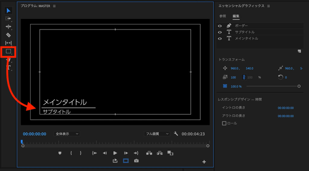 しかし、エッセンシャルグラフィックス(Essential Graphics)を使用すれば、Premiere Proで制作したようなタイトルやアニメーションを追加する事が可能です。