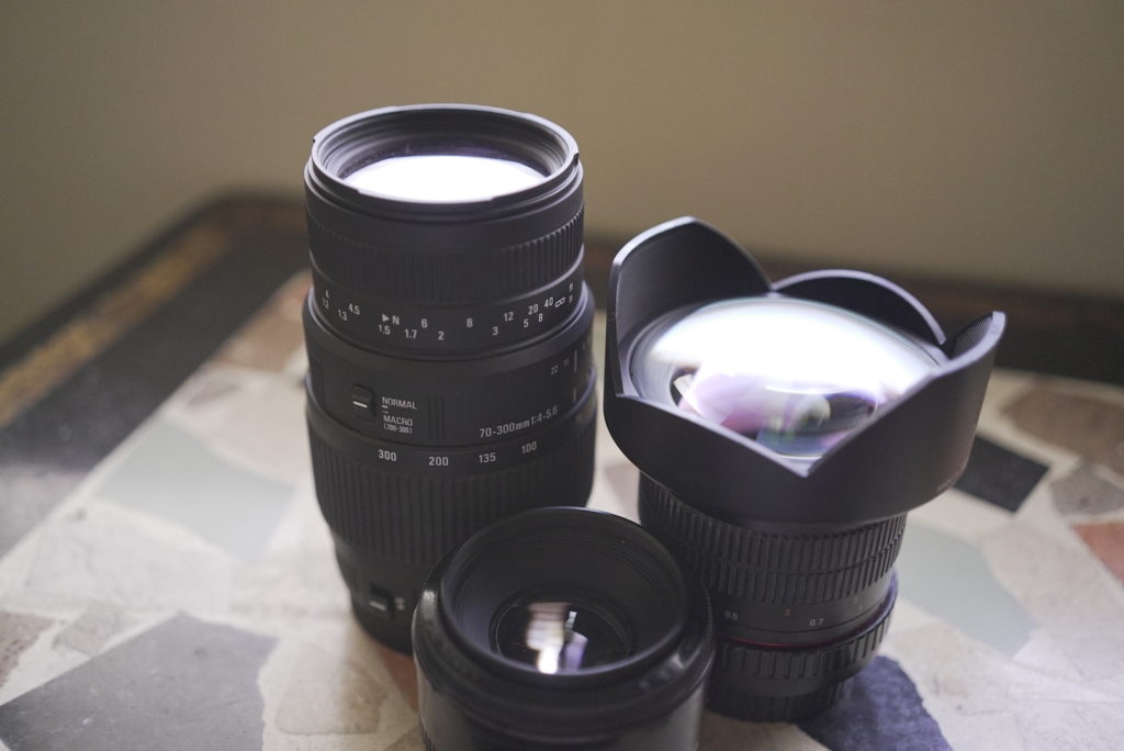 あくまで個人的な意見ですが、仕事などで映像制作を行っている筆者はSAMYANG(Rokinon) 14mm f2.8、Canon 50mm f1.8、Sigma 70-300mm f4-5.6の3種類を使って撮影しています。