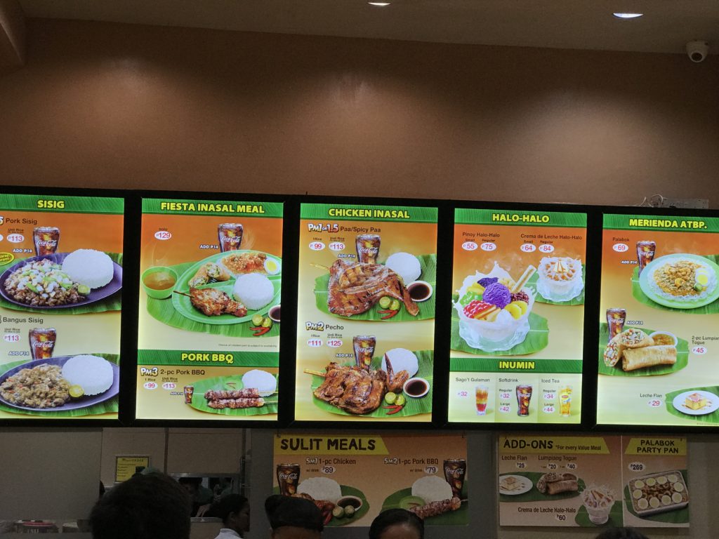 こちらで提供しているメニューは非常にシンプルなもので、一番人気のチキンイナサル(Chicken Inasal)、やシシグ(Sisig)、ポークバーベキュー(Pork BBQ)の他、ハロハロや春巻きなどの軽食類が揃っていました。