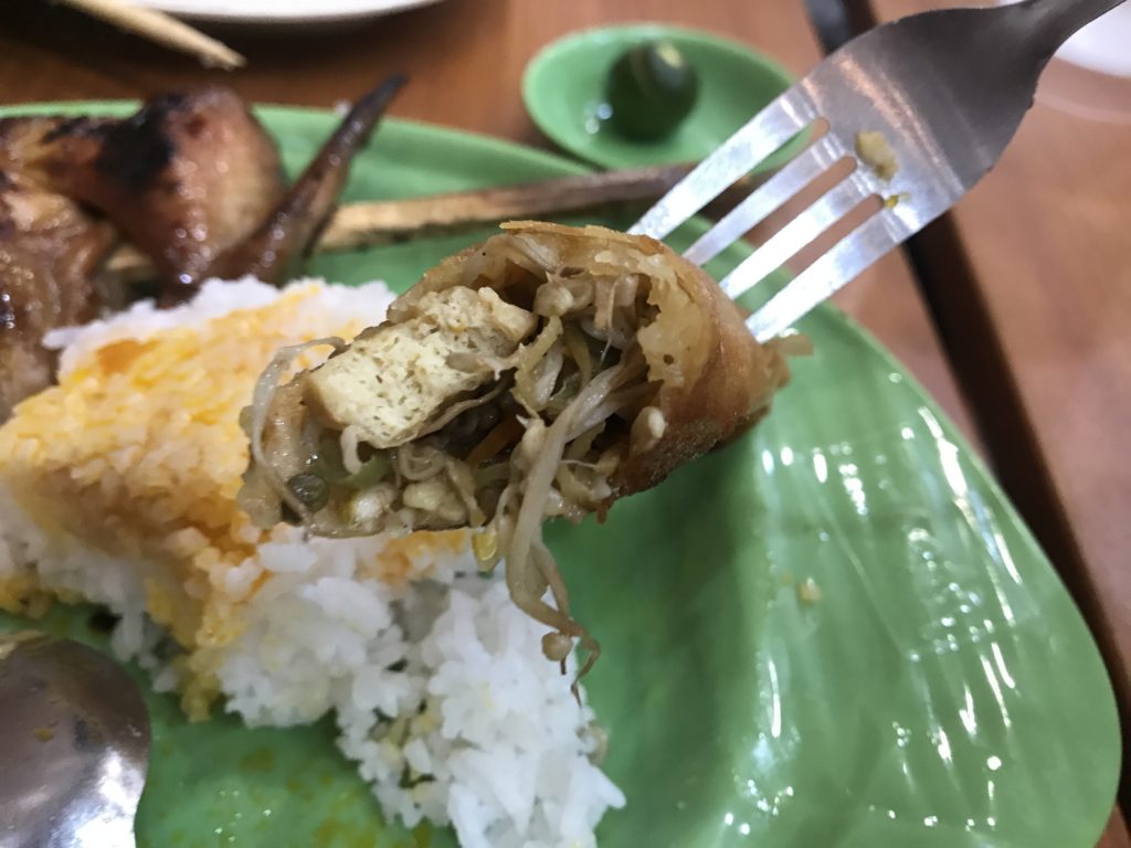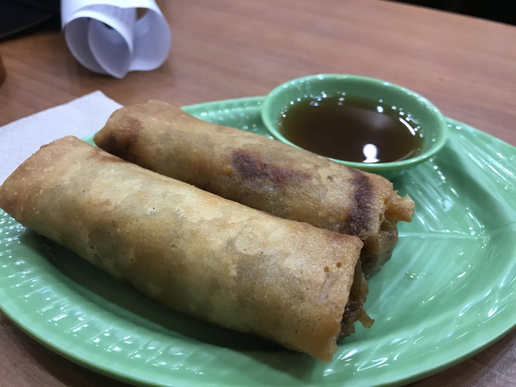 またチキンだけじゃ足りないという方は合わせてLumpia Tongue(ルンピア・トンゲ)をオーダーすると良いでしょう。価格は2本入りの単品で40ペソ(約84円)。